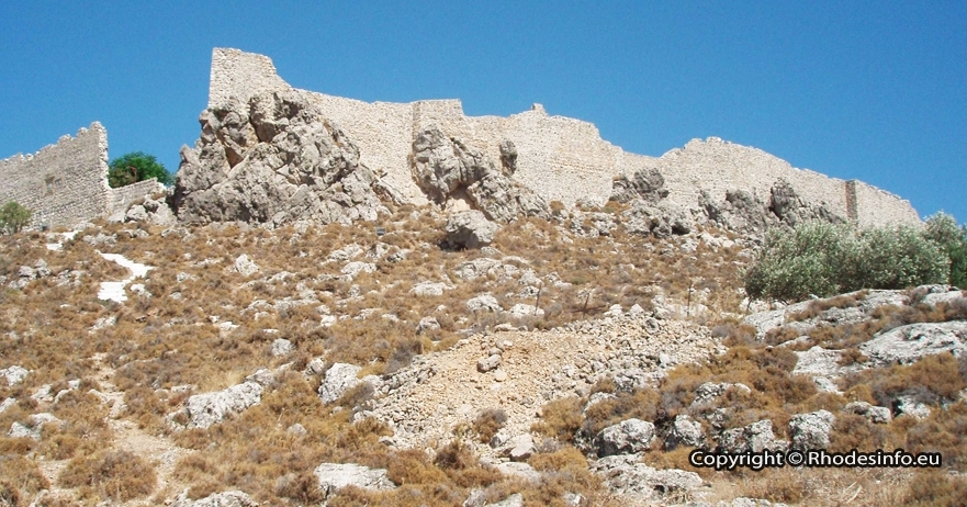 Originally built by grand master Jacques de Milly (1454-1461) on a rocky outcrop 216 metres high, above and to the east of the village of Archangelos and two kilometers from the east coast, it defended the village from coastal raids.
